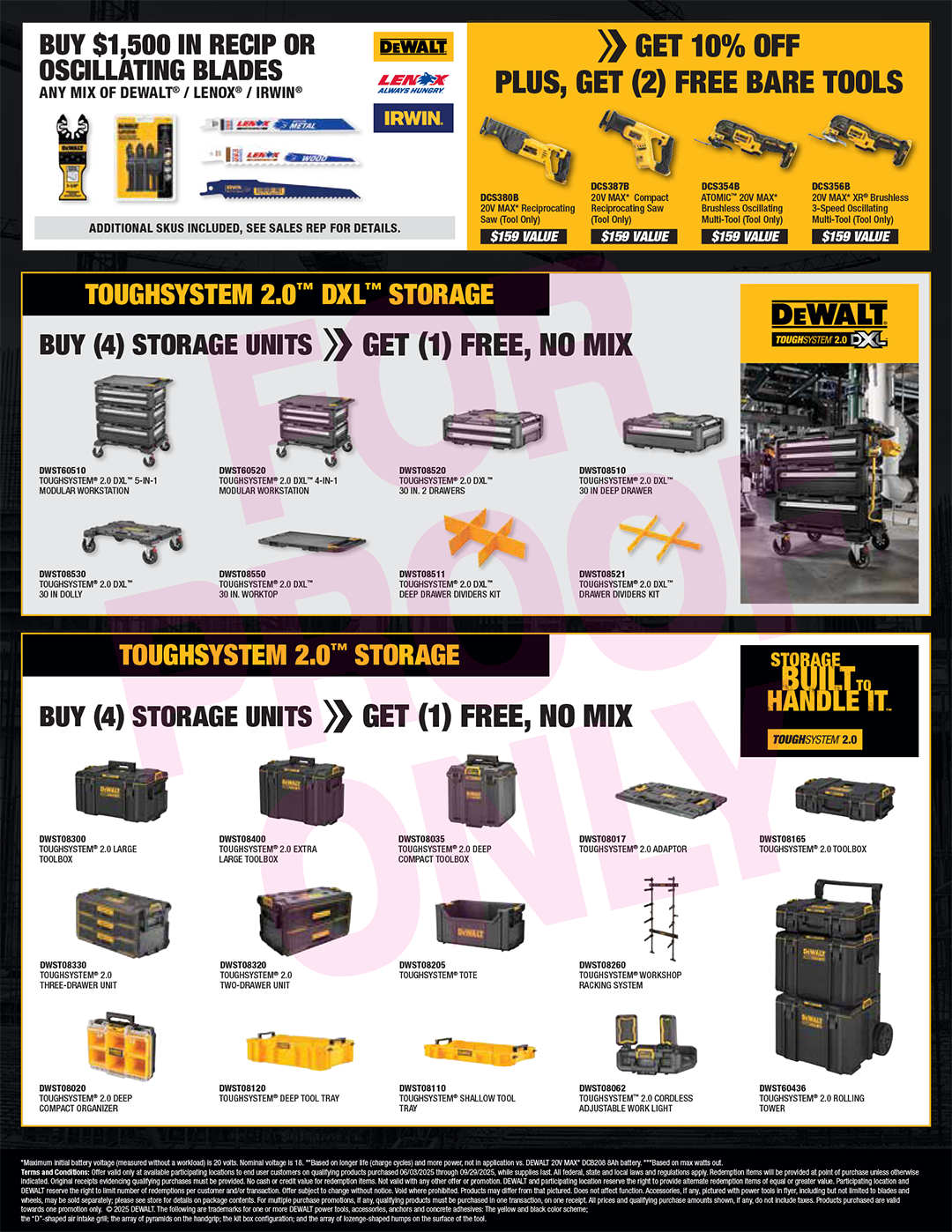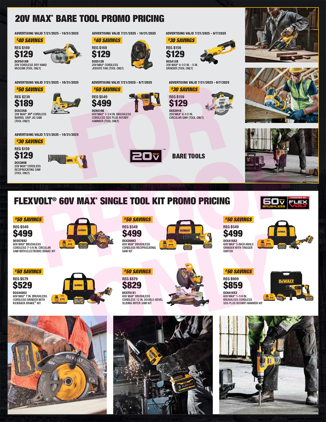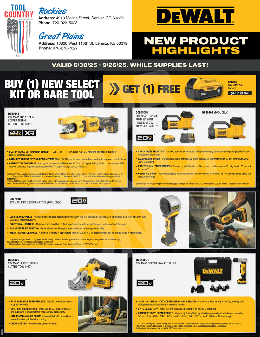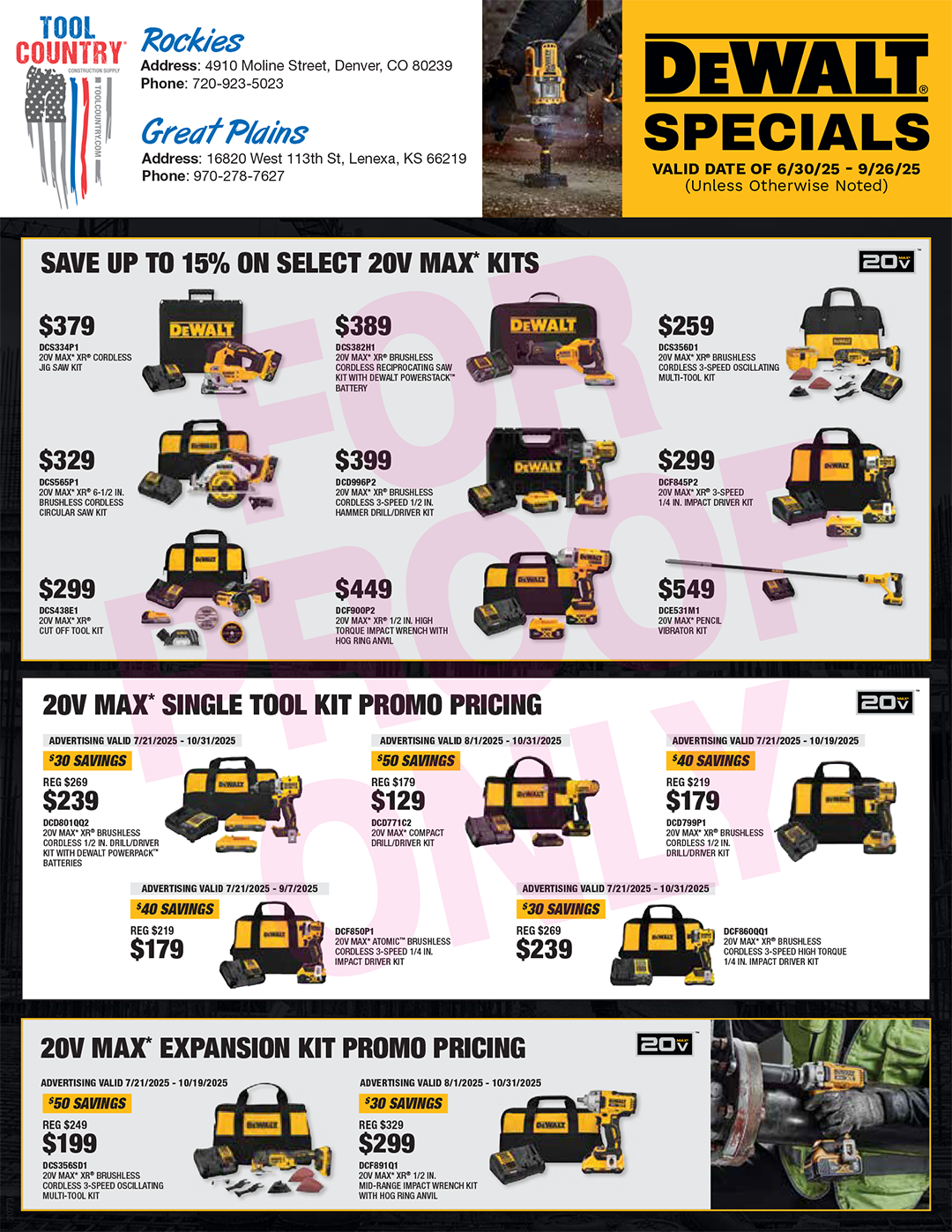 For the best DeWalt deals in the country, there is only one place to go! Take a look though our newest promotions, and contact us at 720-923-5023 to begin the order process.